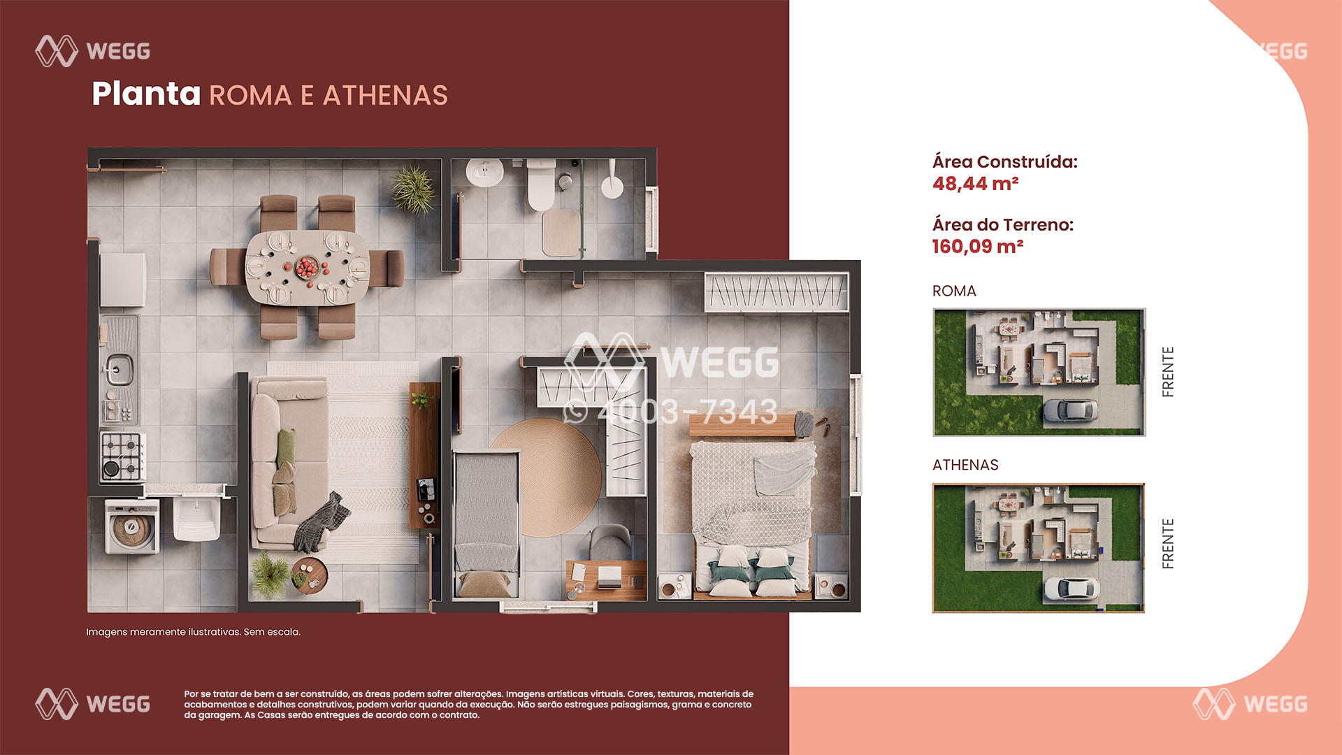 As casas foram desenvolvidas para oferecer funcionalidade e excelente aproveitamento de espaço, atendendo diferentes estilos de vida sem abrir mão do padrão de qualidade da Wegg.